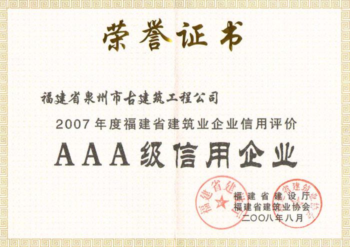 福建省建設廳、省建筑業協會授予我司AAA級信用企業榮譽證書
