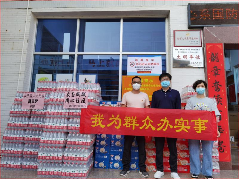 眾志成城,同心抗疫!總經理蔣無盡(豐澤區人大代表)代表公司向豐澤區東湖街道捐贈抗疫物資:100件礦泉水,100件八寶粥及花生牛奶,助力抗疫!泉州加油!