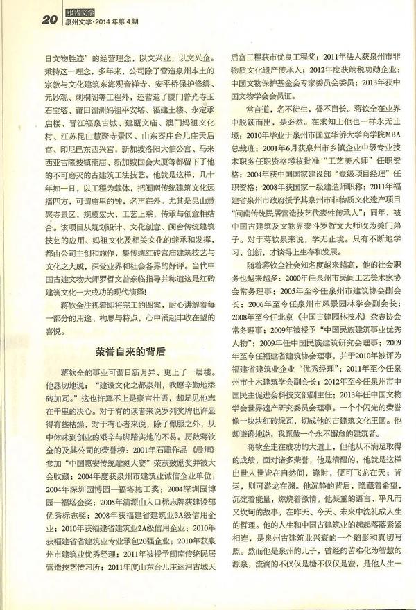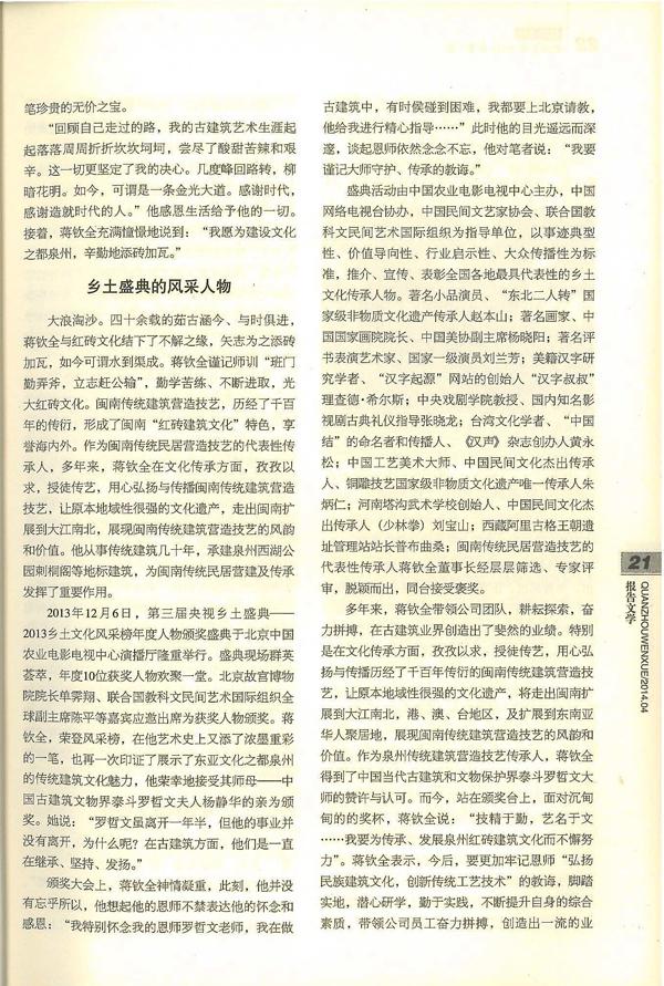 《泉州文學》2014年第4期-----《紅磚建筑傳承人》