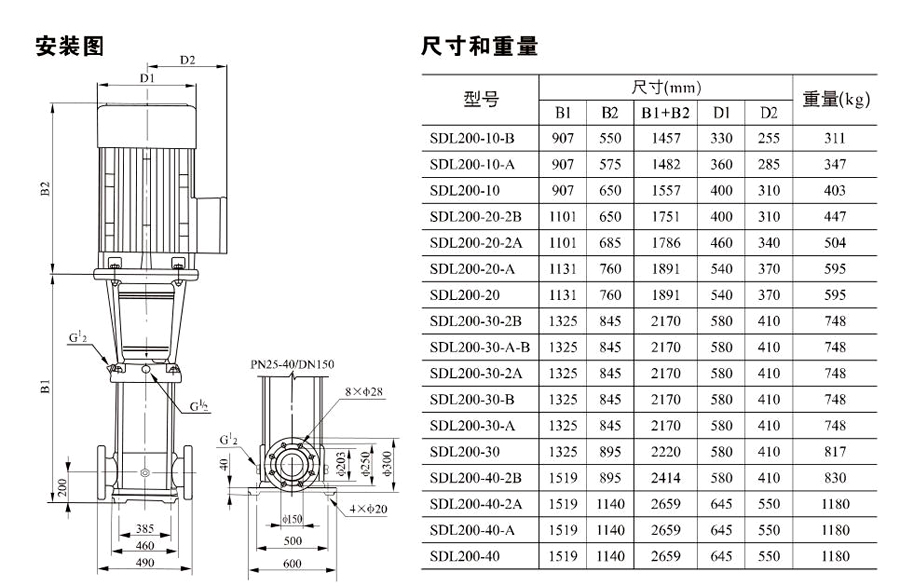 南元SDL200/SDLT200立式多級(jí)離心泵有不同的泵規(guī)格和不同級(jí)數(shù),以滿(mǎn)足所需的流量和壓力。