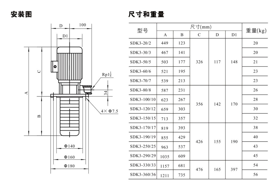 SDK3/SDKT3為配用標(biāo)準(zhǔn)電機(jī)的非自吸立式多級離心泵,電機(jī)軸和泵軸用聯(lián)軸器直接聯(lián)接的結(jié)構(gòu)。為滿足水槽或容器的安裝深度,可安裝空套的腔體來改變泵本身的侵入 深度。