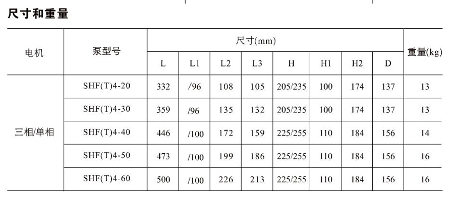 SHL/SHF/SHFT4為臥式多級非自吸多級離心泵,配加長軸電機。緊湊式結構使泵尺寸很小,軸向入口或徑向出口。